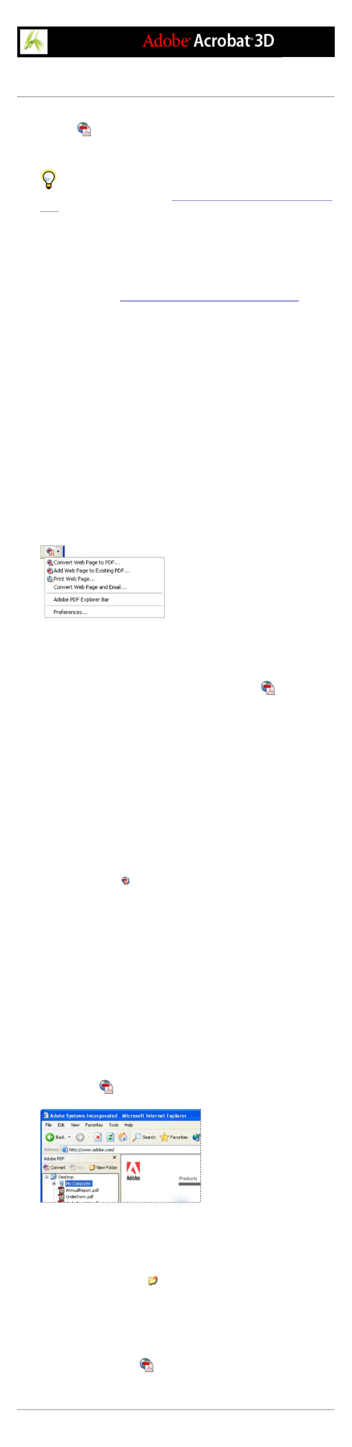 ● Choose Adobe PDF Explorer Bar from the Convert Current Web Page To An Adobe PDF