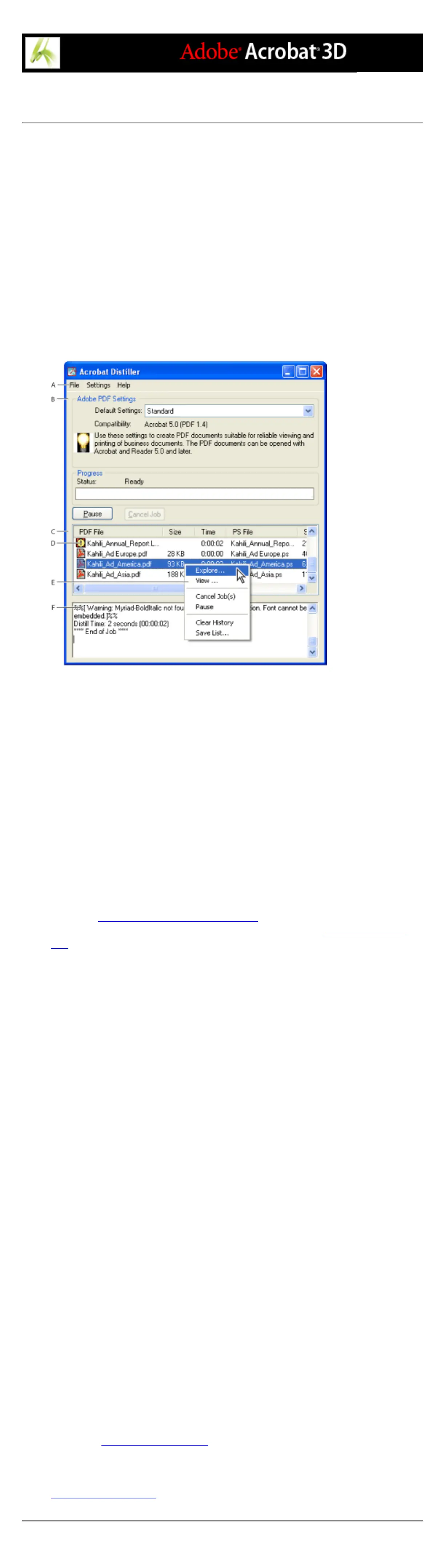 and get help on how to use Distiller. From the Acrobat Distiller window, you can also