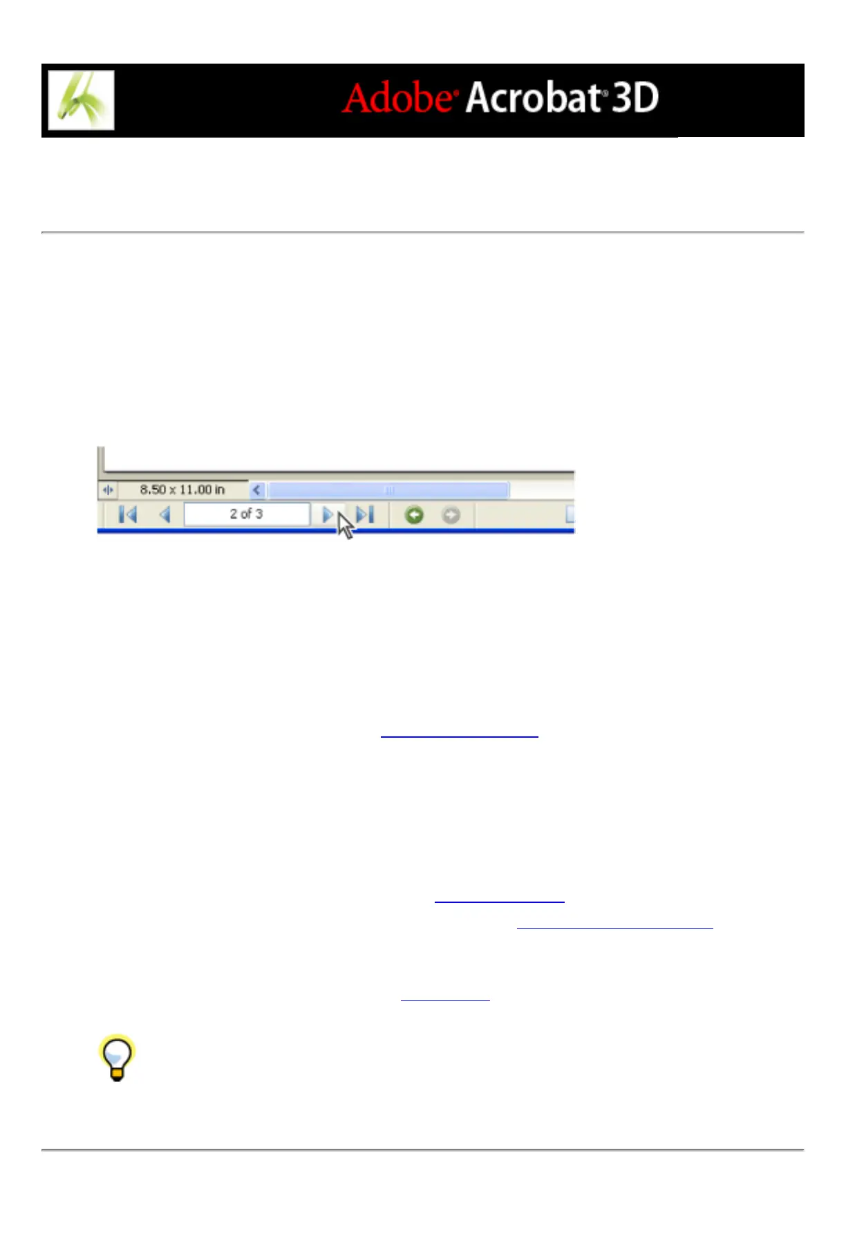 To move through pages of a PDF document, click the navigation buttons on the status bar,