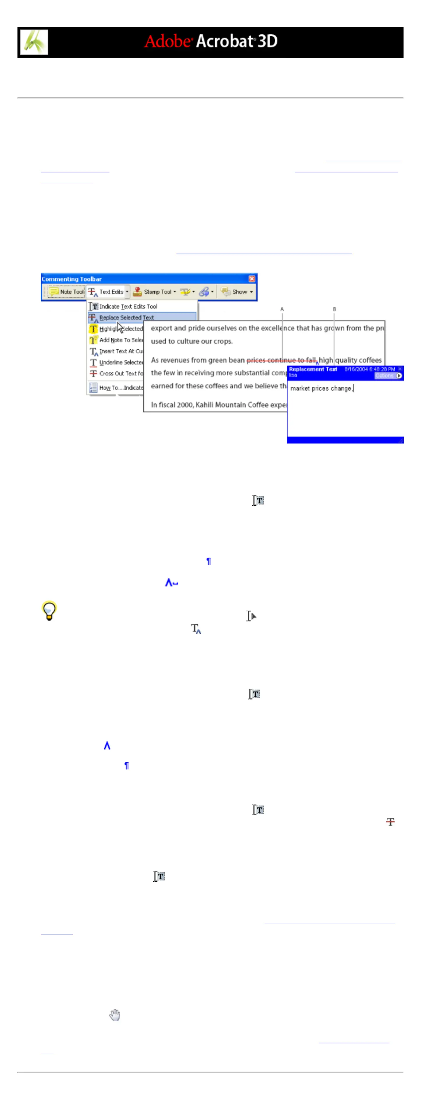 indicate which text should be deleted, inserted, or replaced in the source file from which the Adobe PDF