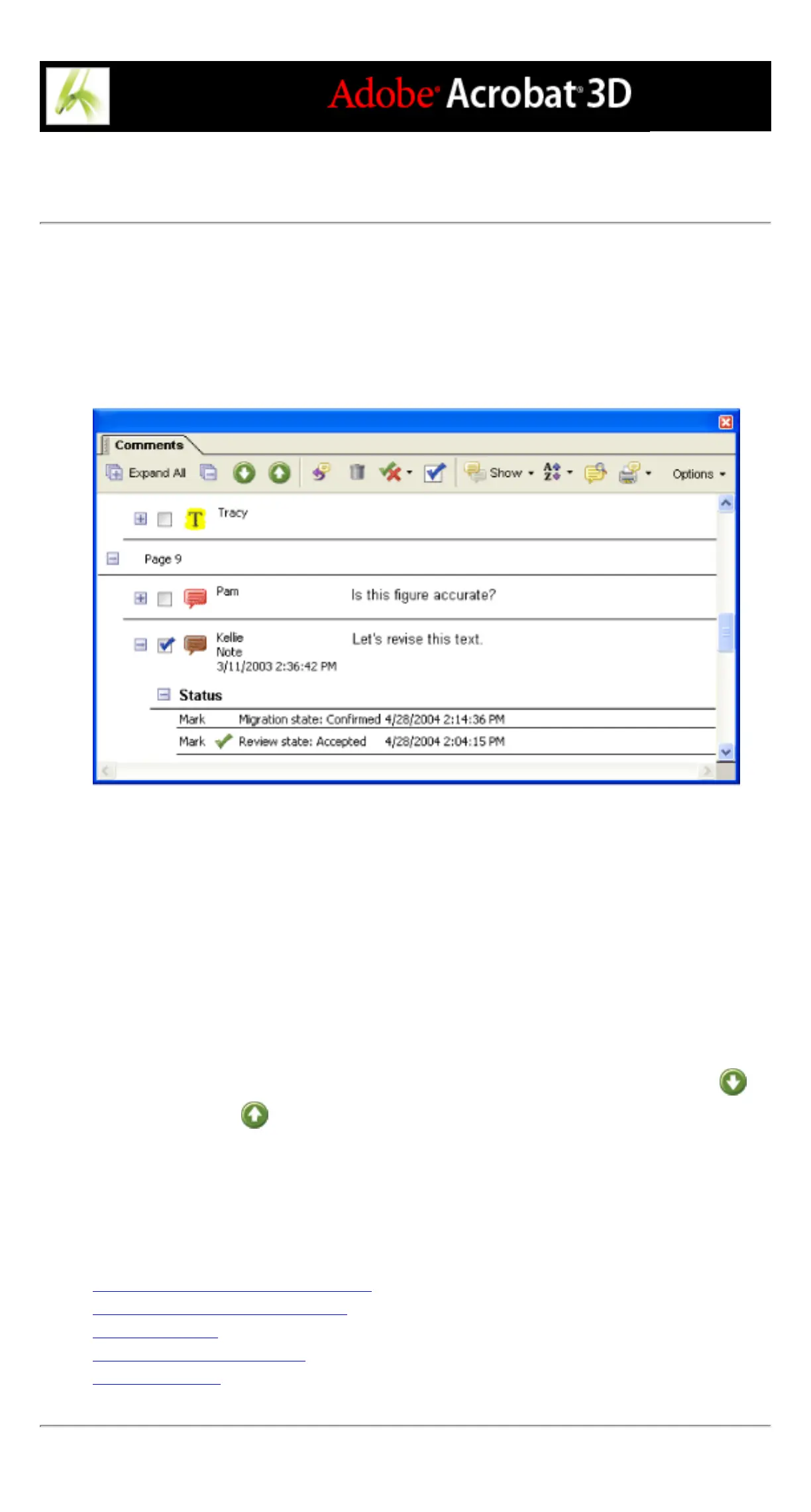 The Comments List lists the comments in an Adobe PDF document. You can use the