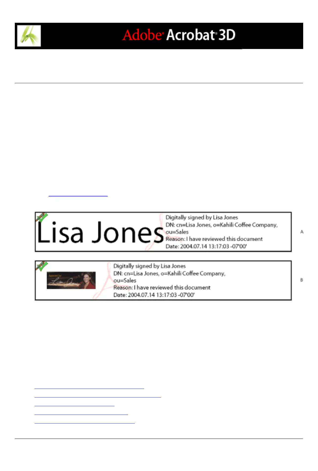 page and is not the actual digital signature information. The Signatures tab indicates which