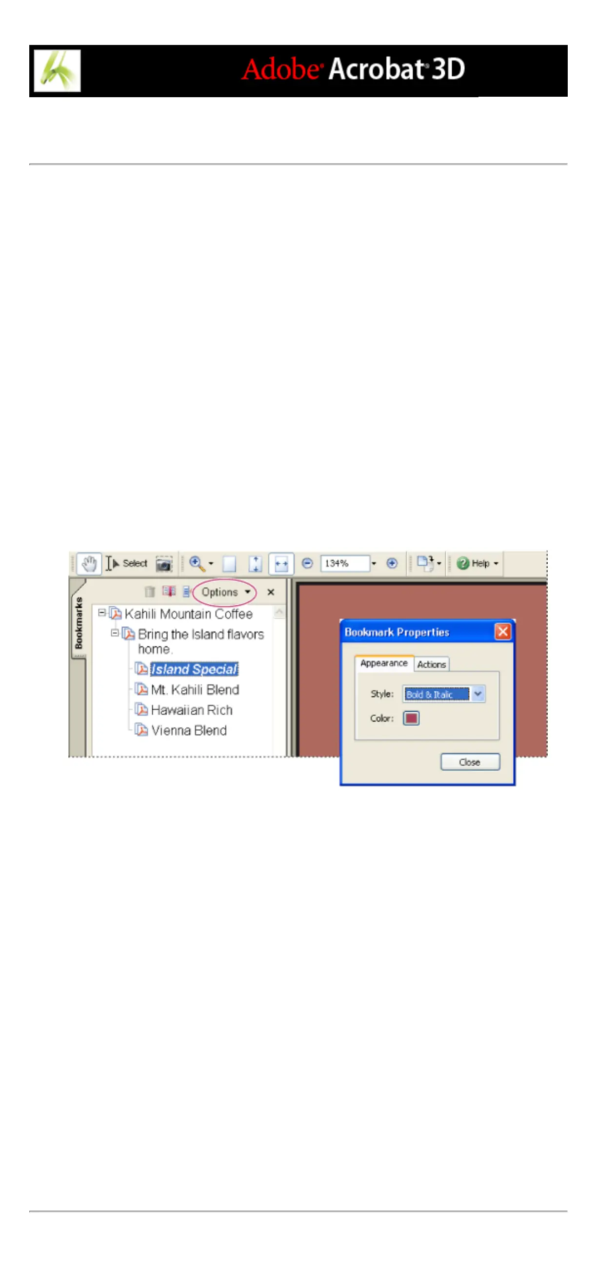 destination, or action type. You can also change the appearance of a bookmark to draw