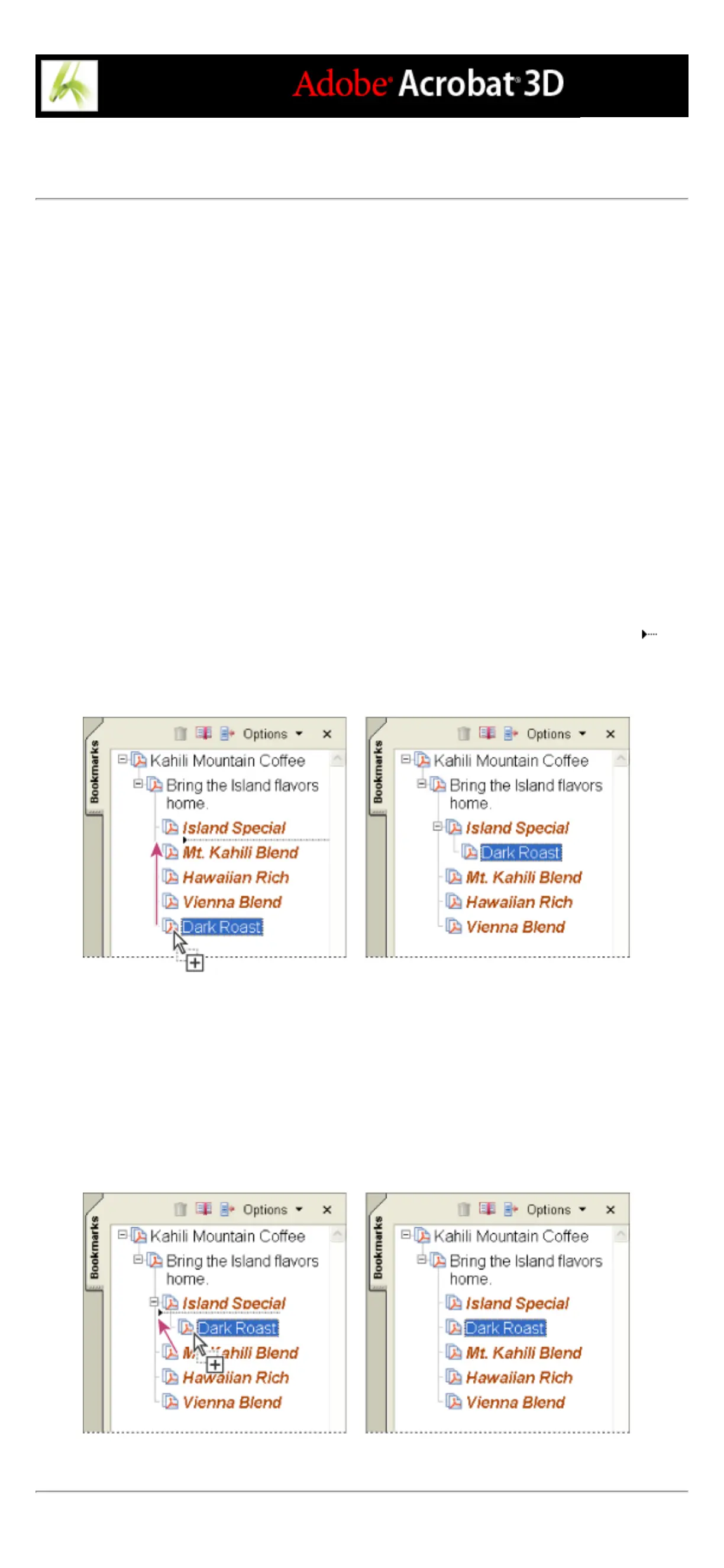 You can nest a list of bookmarks to show a relationship between topics. Nesting creates a
