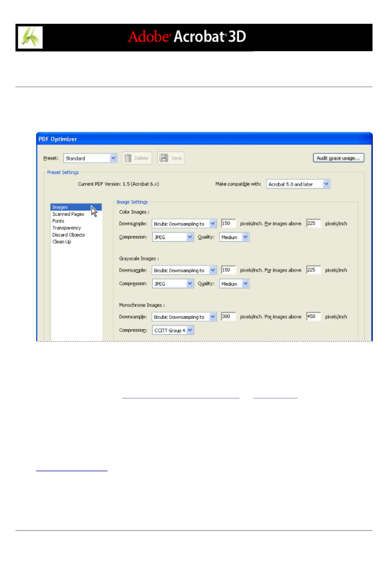 Images panel of PDF Optimizer. You can change the PDF compatibility in this dialog box.