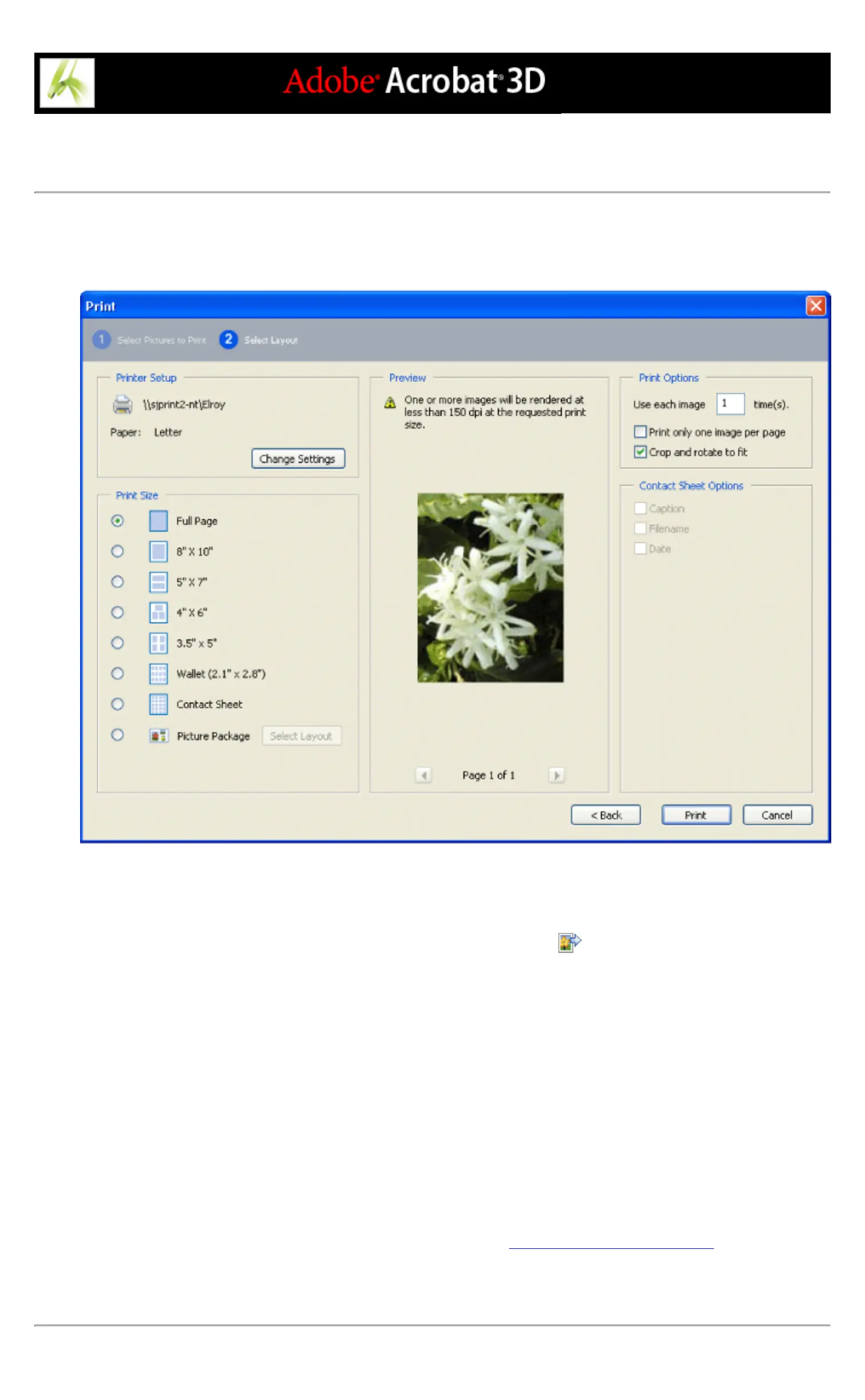 You can print pictures to a local printer from an Adobe PDF file in just a few steps. Print any number of pictures by