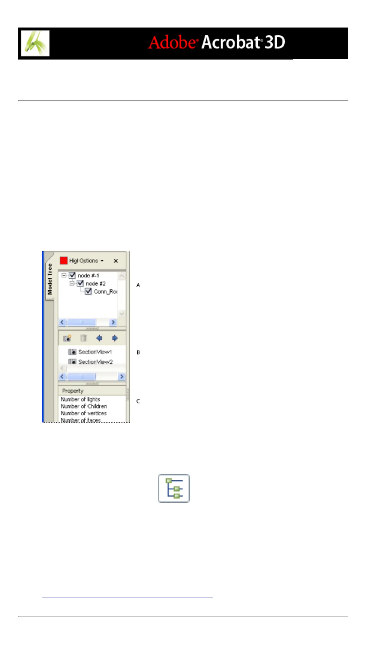 Model Tree A. 3D object's hierarchy B. Saved views C. Part information
