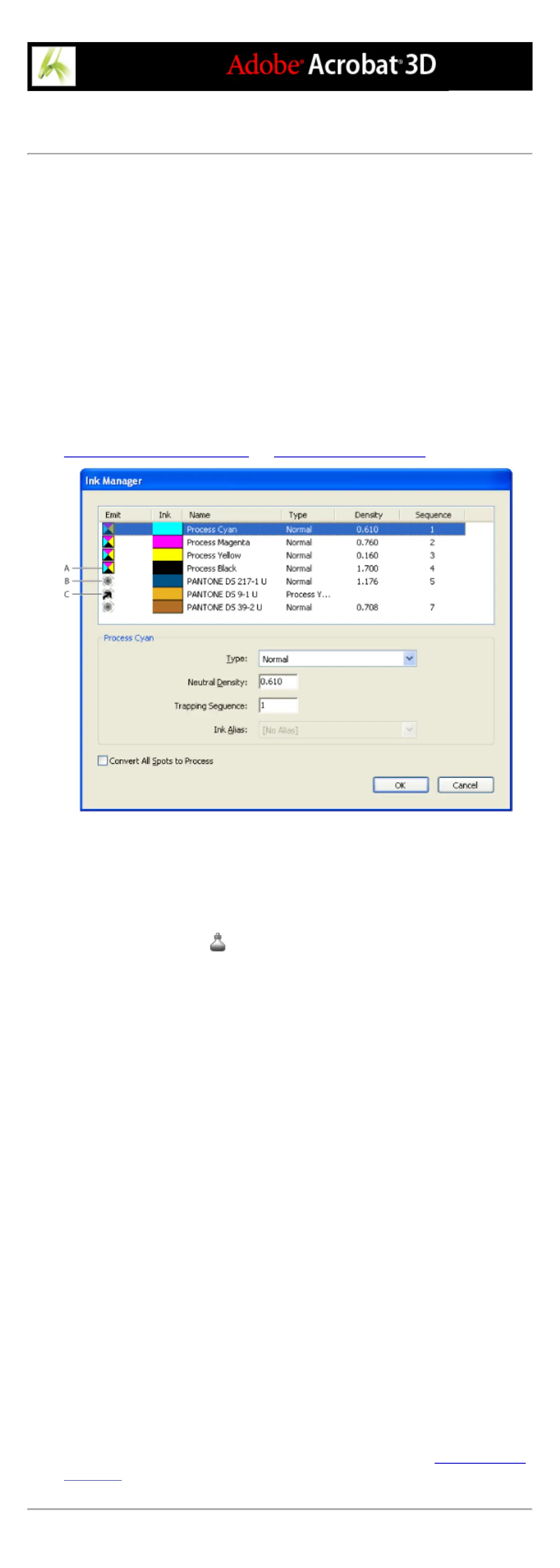 Ink Manager A. Process ink B. Spot ink C. Aliased spot ink