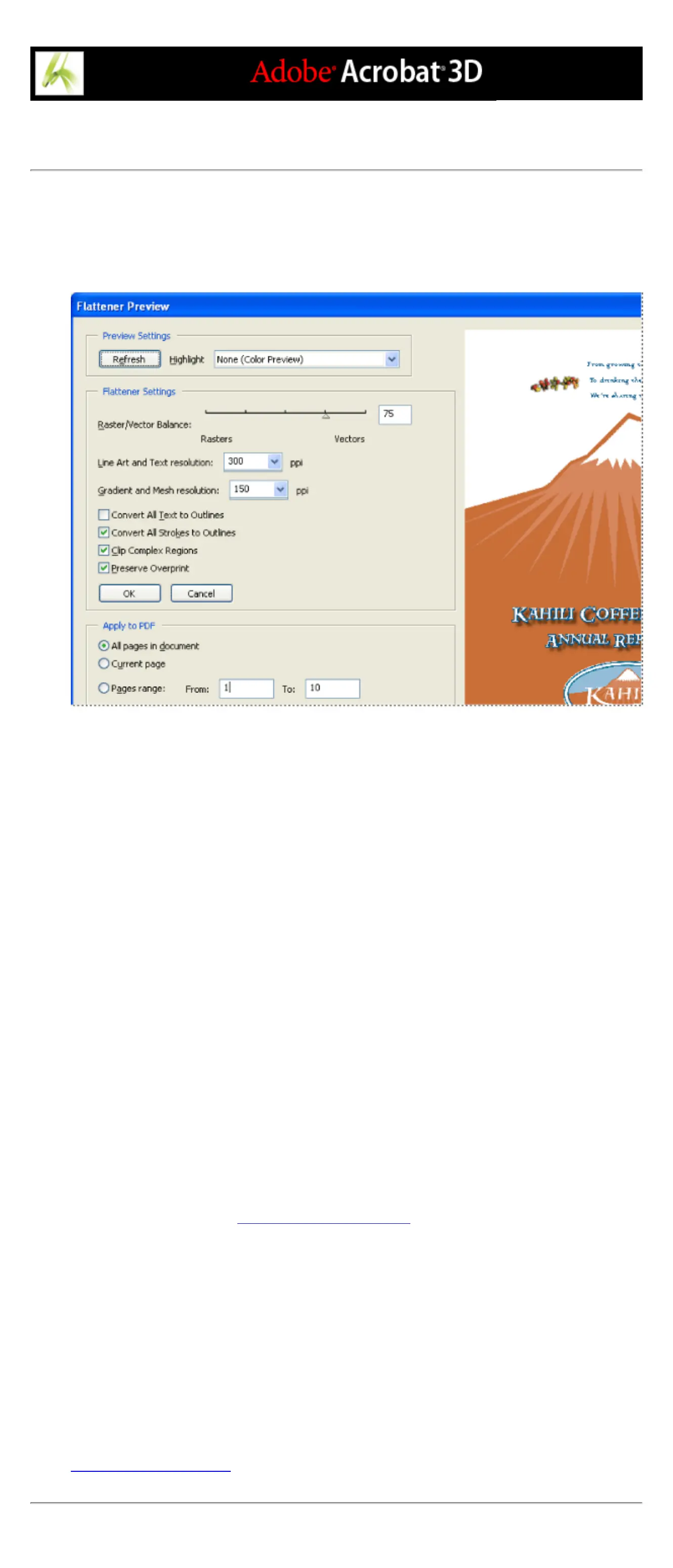 1. In the Flattener Preview dialog box, specify flattener settings.
