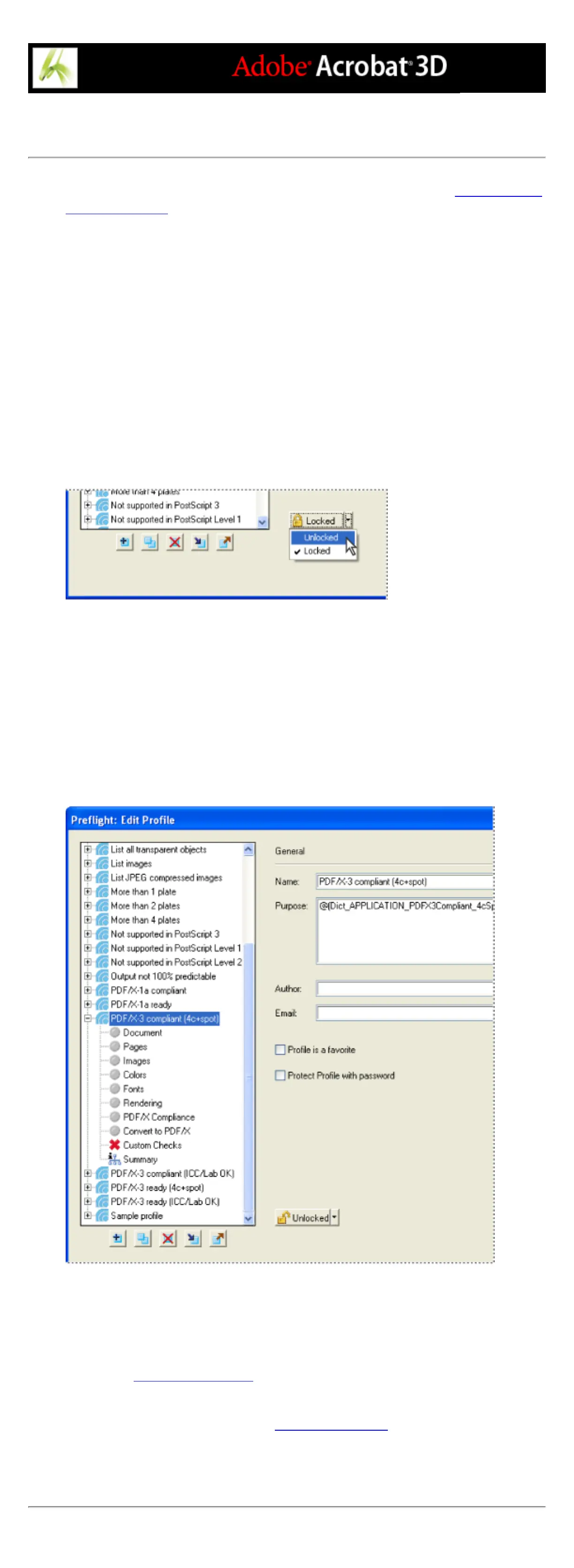 Before you can edit a preflight profile, the profile must be unlocked. (See Adding security