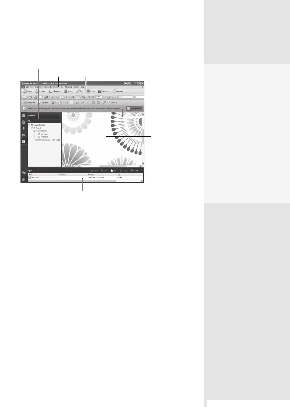 Figure 1 The Acrobat 9 Pro interface is made up of several components.