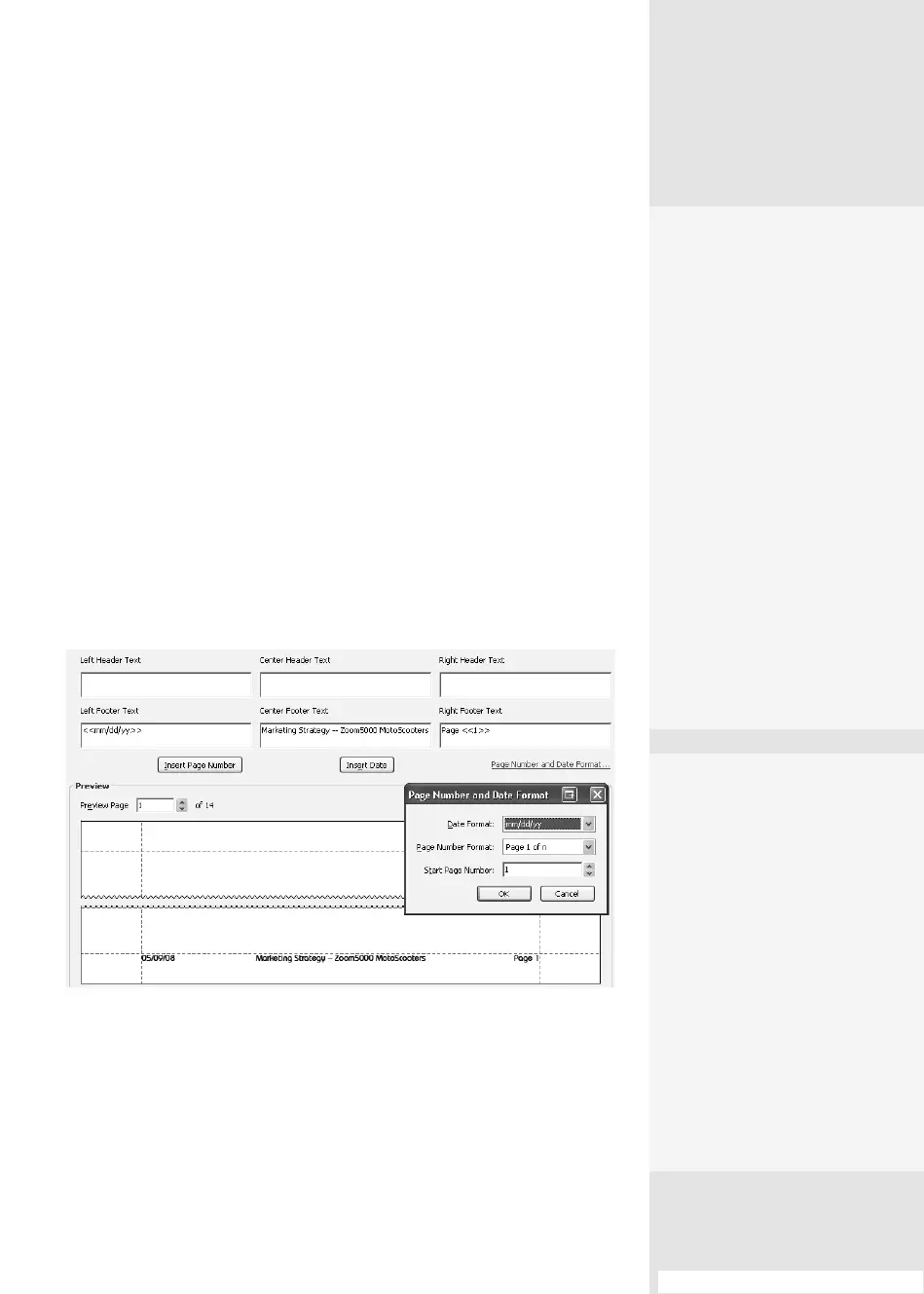 entry elds each for Header and Footer content—left-justied, cen-