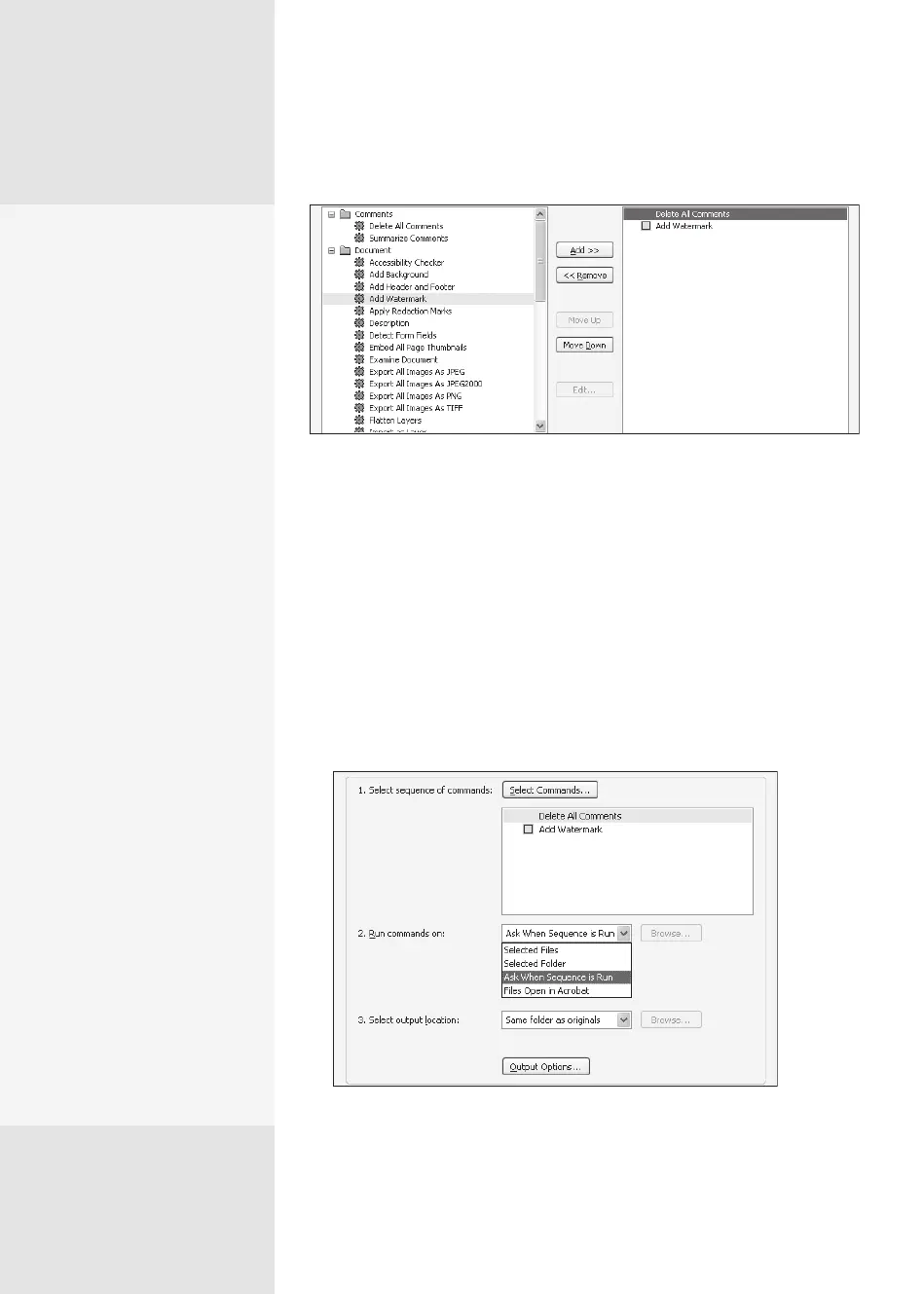 Figure 55a Choose from a long list of actions to include in the batch sequence.