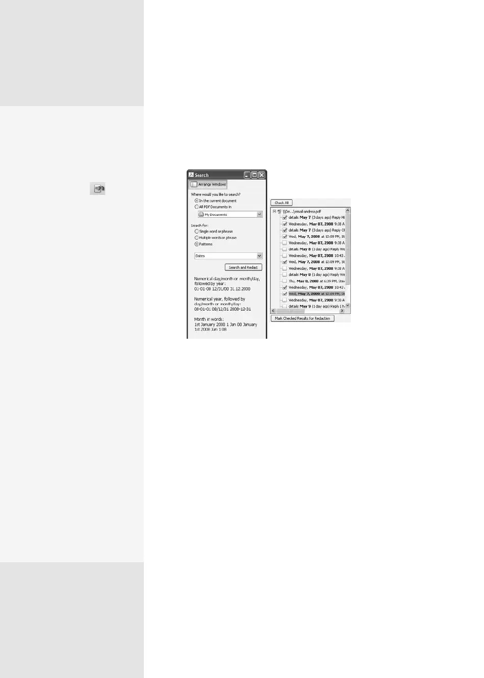 4. Click the search results you want to redact; click Check All to select the