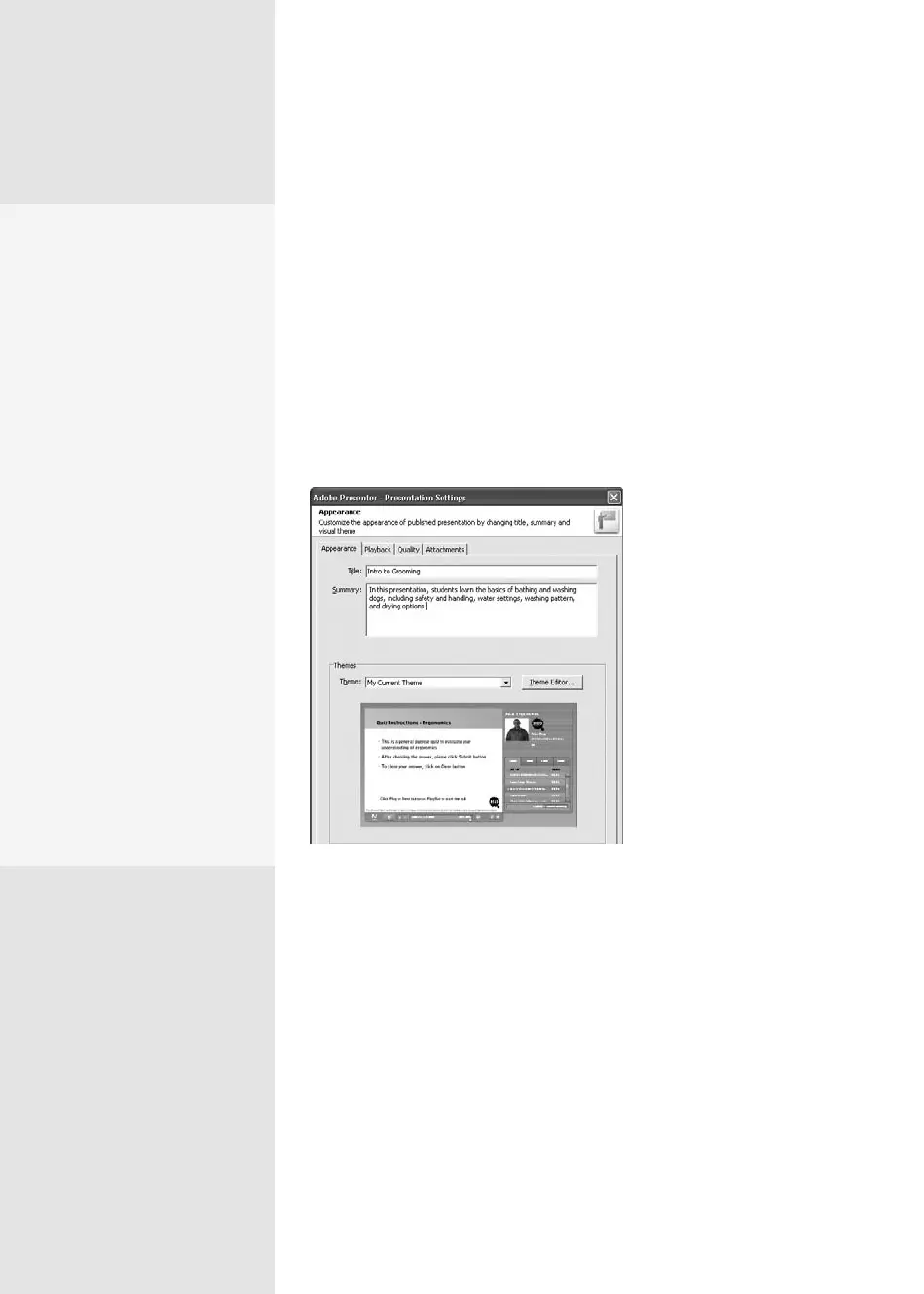 C H A P T E R N I N E Building Content with Adobe Presenter