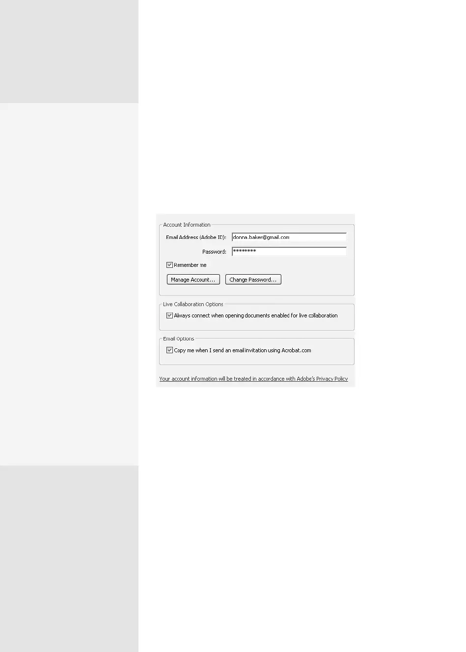 Figure 78c Specify your settings for Acrobat.com in the program preferences.
