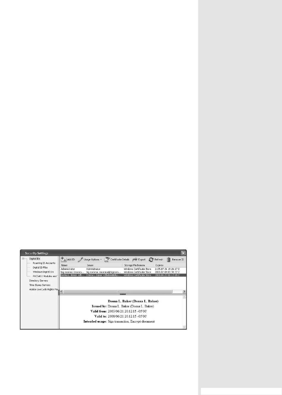 dialog. Click Digital IDs in the left of the dialog to display your existing