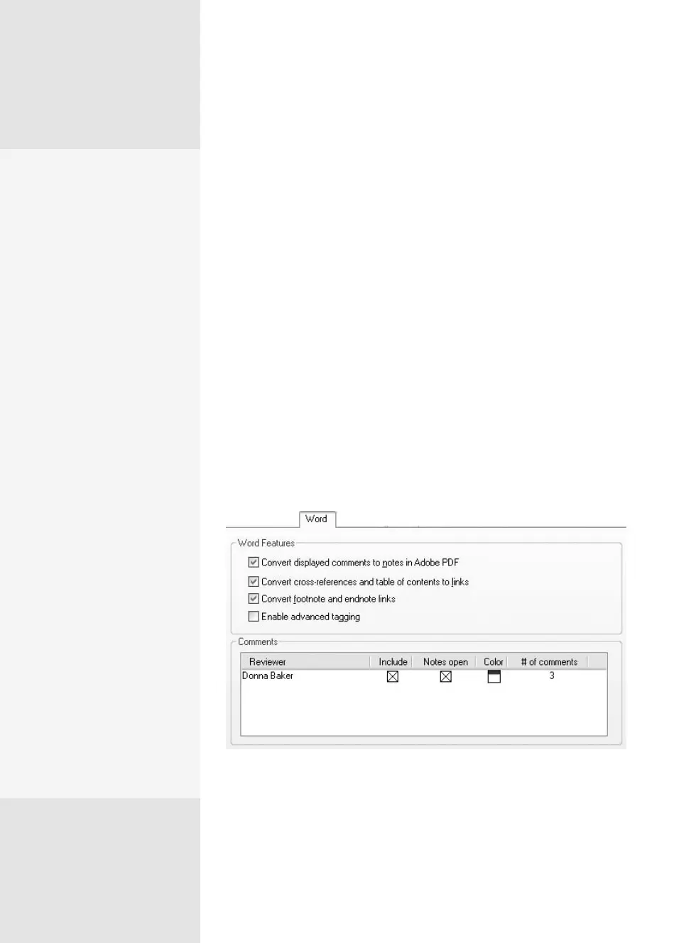 “Convert displayed comments to notes in Adobe PDF.” (See Chapter 10
