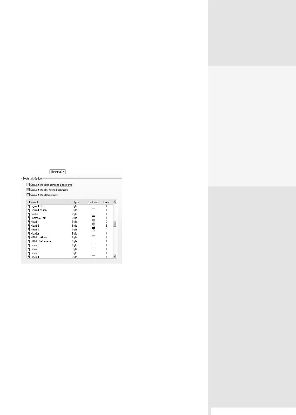 ating bookmarks, depending on your document’s structure. Bookmarks