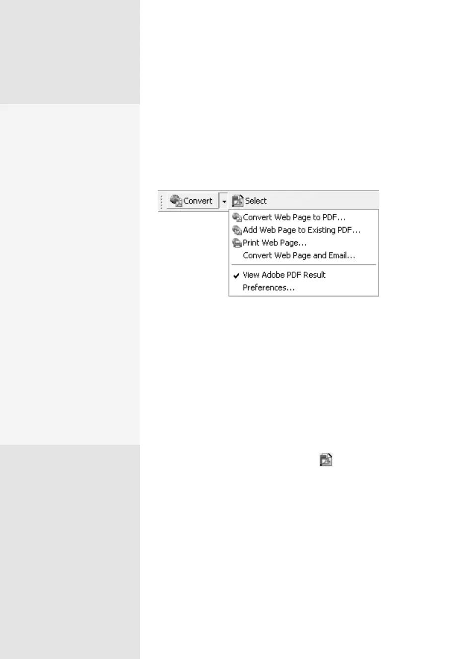 Figure 15a The Internet Explorer PDFMaker includes several ways to