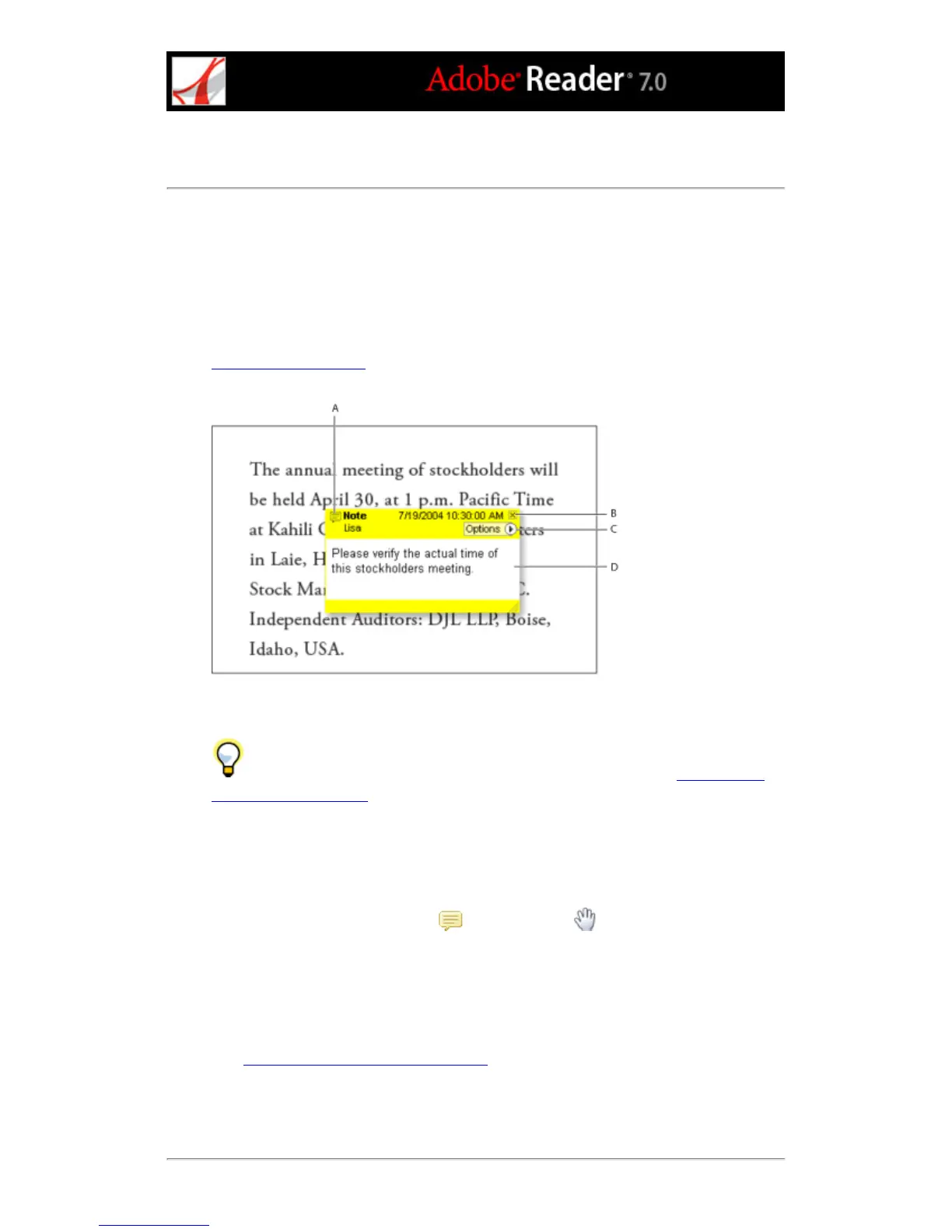● To open a note, select the Note tool or the Hand tool , and then click or double-