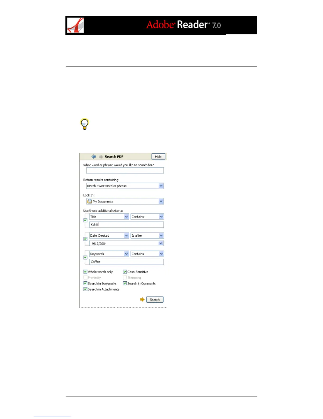 1. In the Search PDF window, in Advanced Search options, select the check box adjacent to