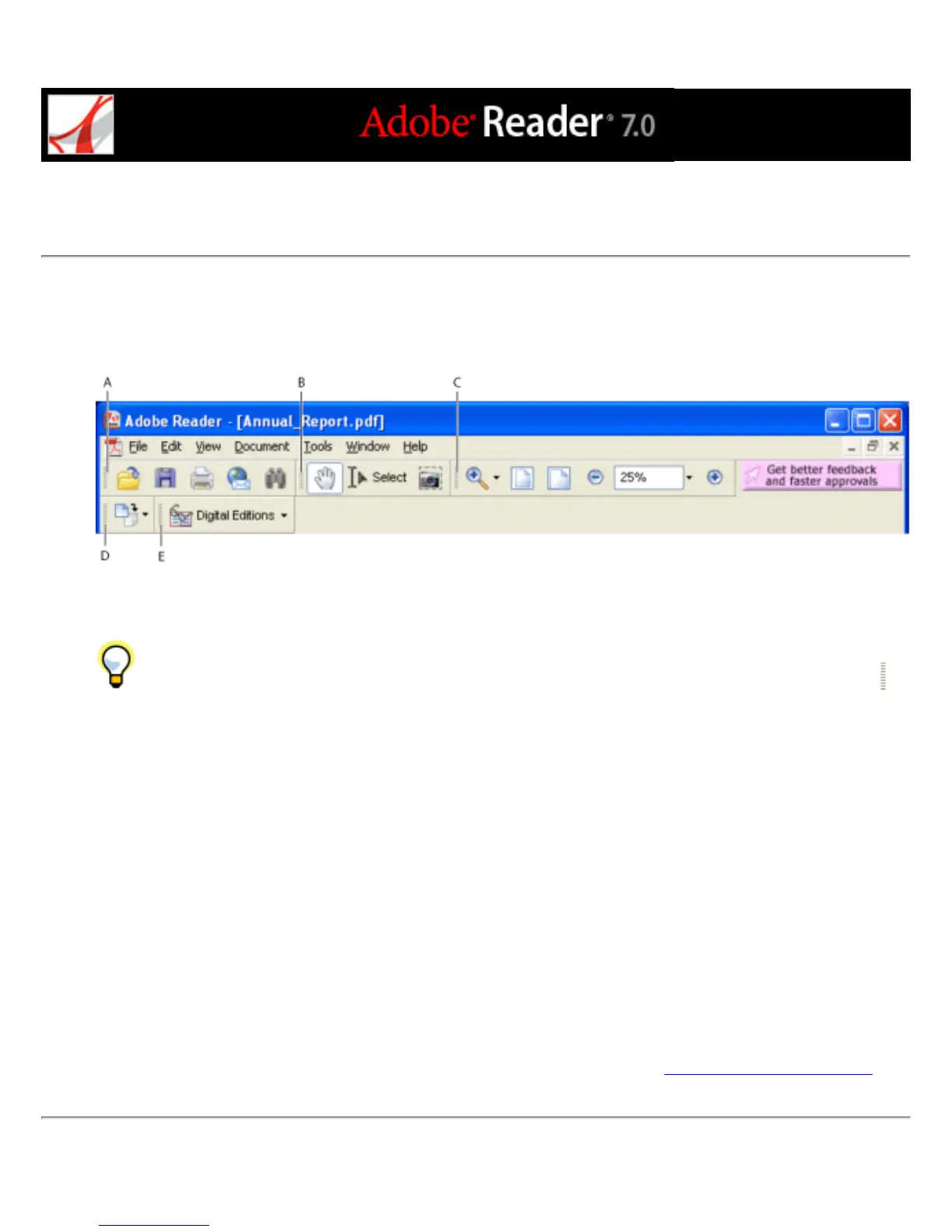 The Adobe Reader toolbar area includes a set of toolbars, some of which appear by default and some of