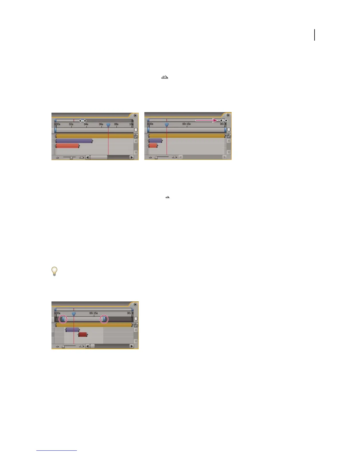 • In the Timeline panel, click the Zoom In button or drag the zoom slider.