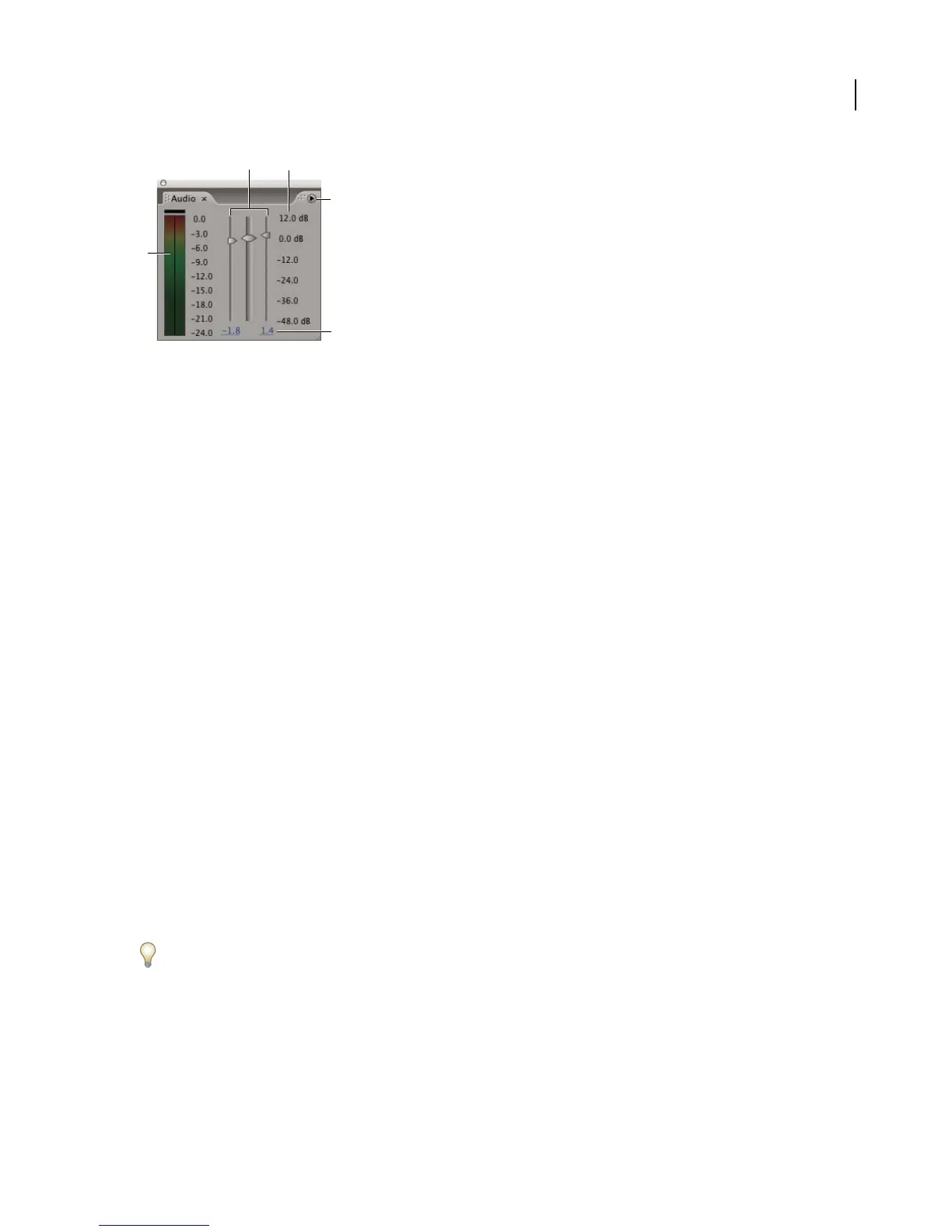 Decibels Displays audio levels as decibels.