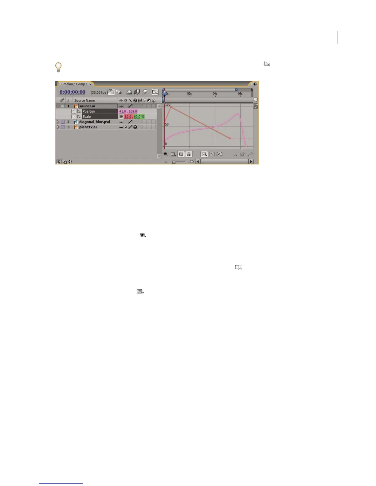 or you can view multiple properties simultaneously. When more than one property is visible in the Graph Editor,