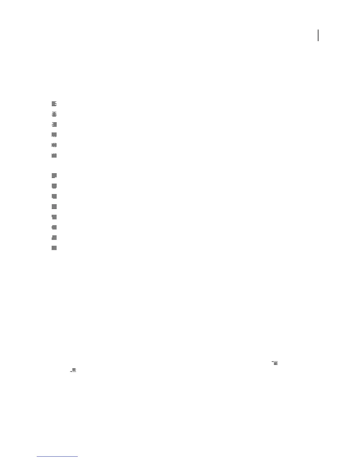 • To specify justification for paragraph text, in the Paragraph panel, click a justification option: