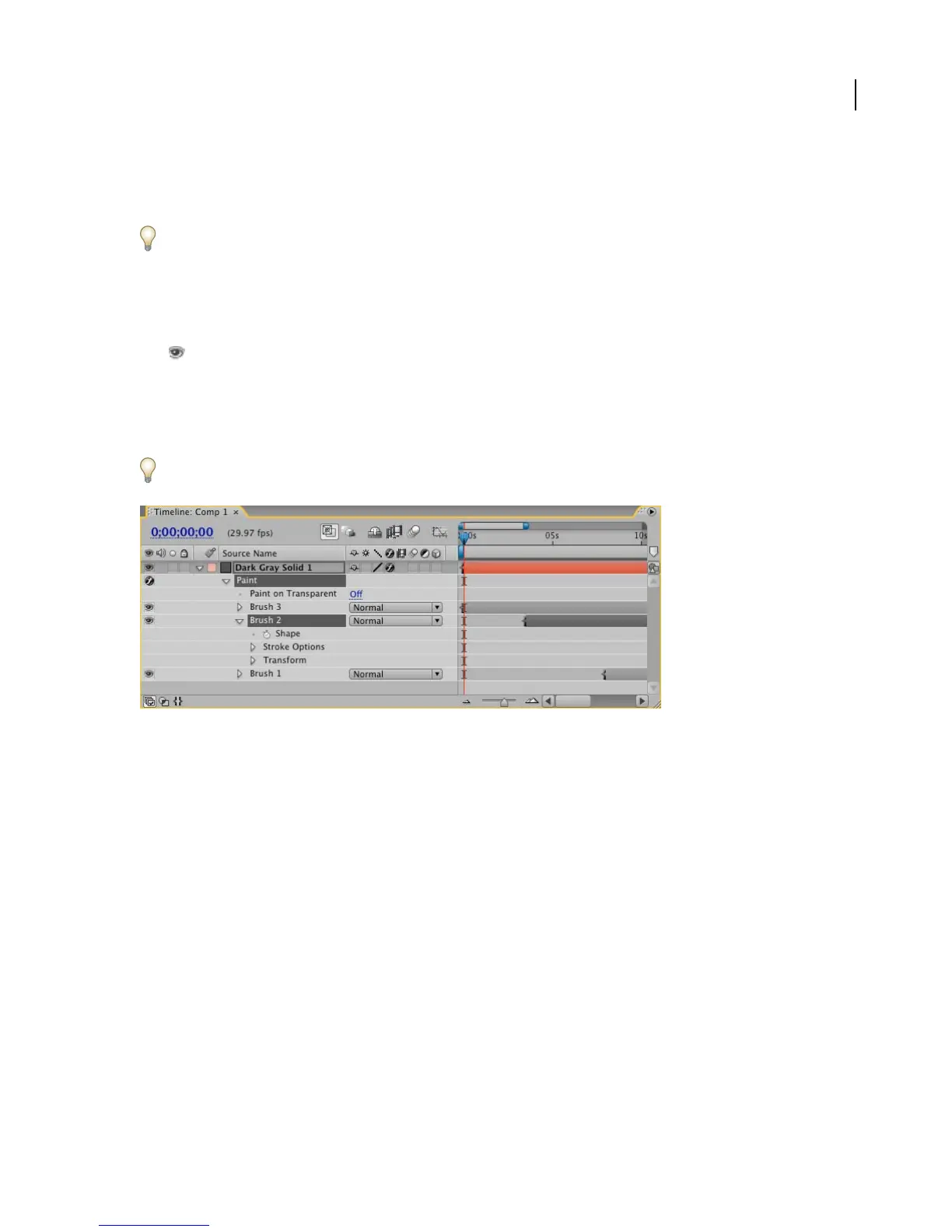 down to change its position relative to other strokes. You can hide a paint stroke from view by clicking the eye