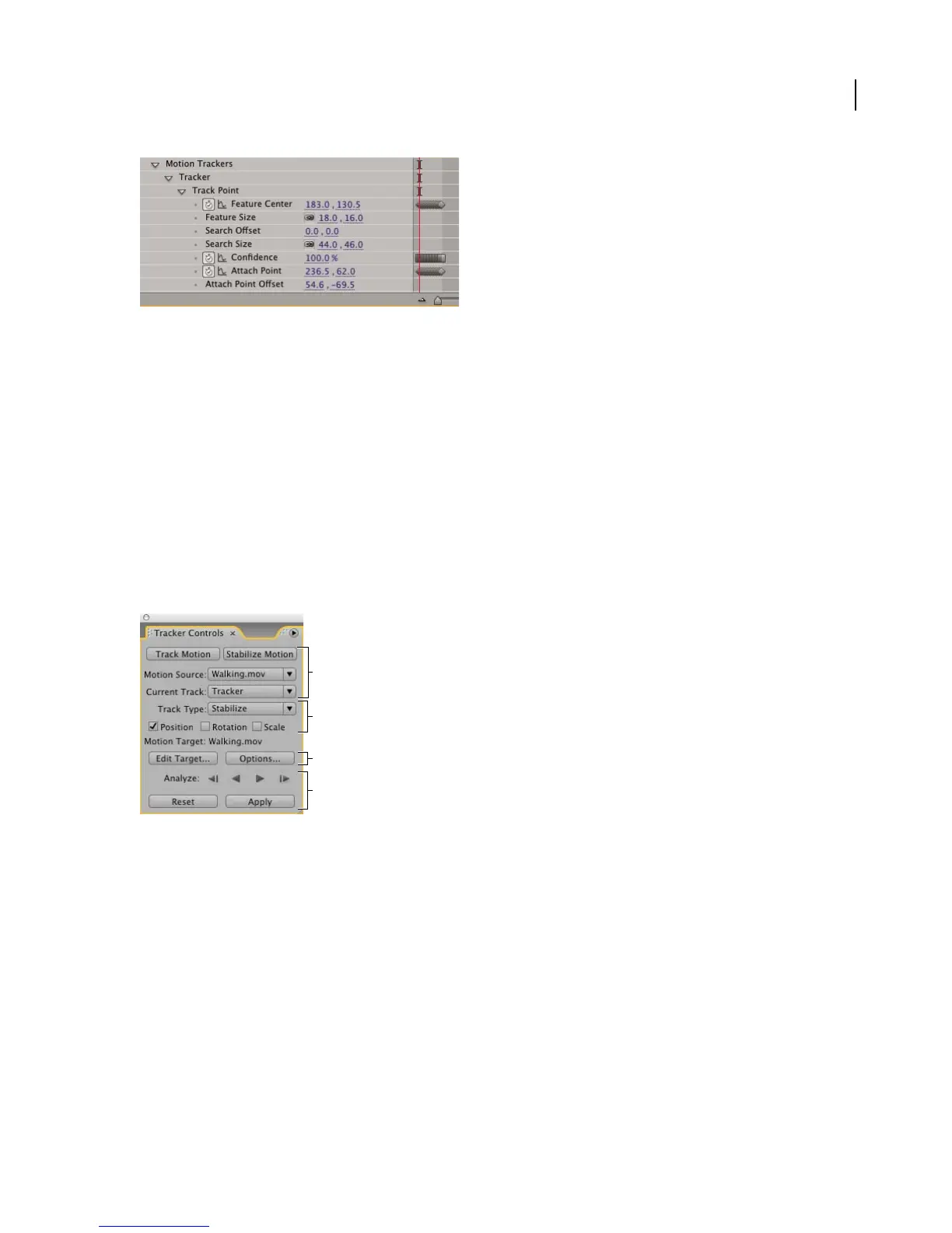 You use the Tracker Controls panel to control all types of motion tracking and stabilization. In this panel, you specify