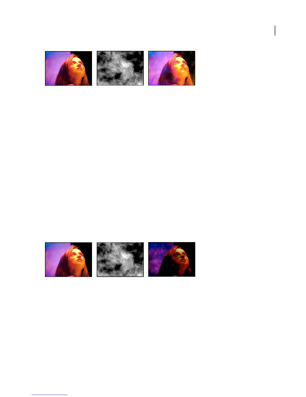 Original (left); effect applied to layer created from solid with Fractal Noise effect (center); result (right)