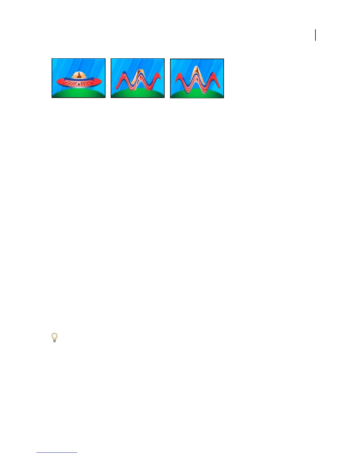 Original (left); the Wave Warp effect is constrained by the dimensions of the layer (center); Grow Bounds fixes this problem (right).