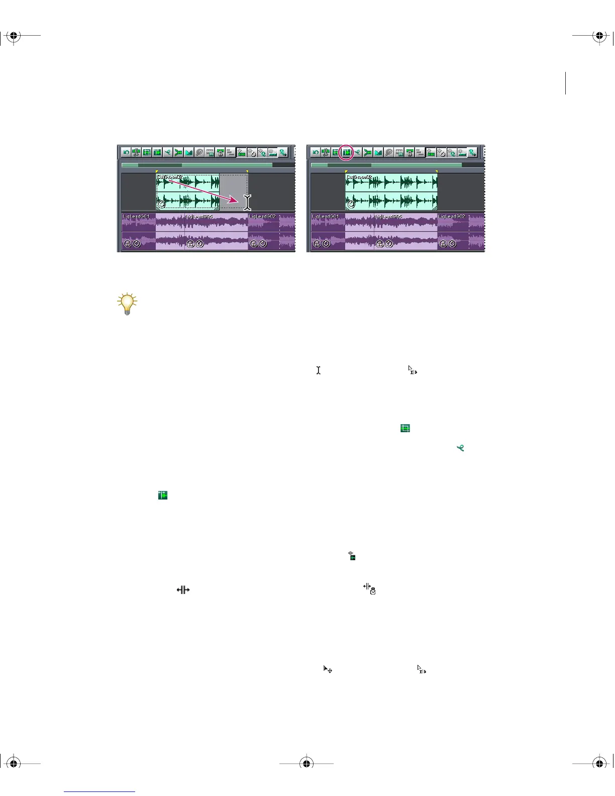 Though the procedures in this section mention toolbar buttons for clip editing commands,