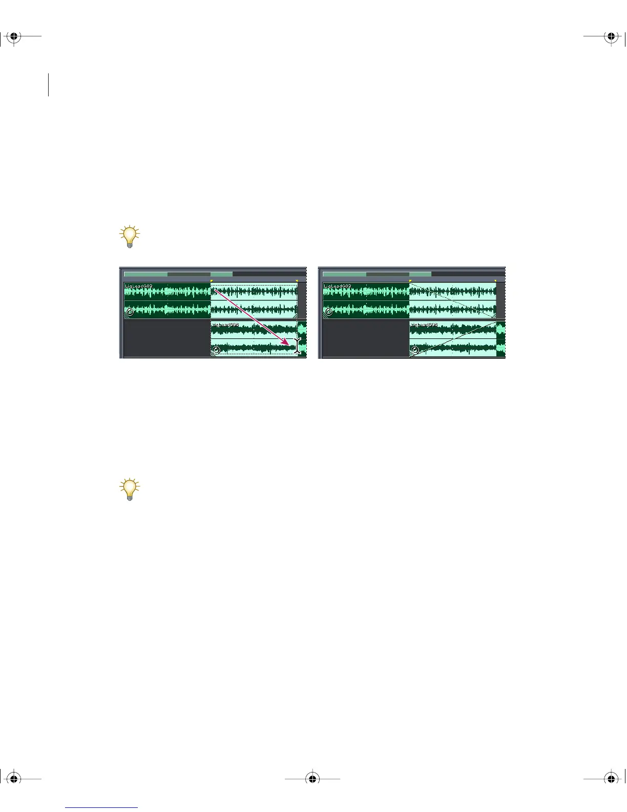 3 Across the overlapping area, select a transition region for the crossfade.
