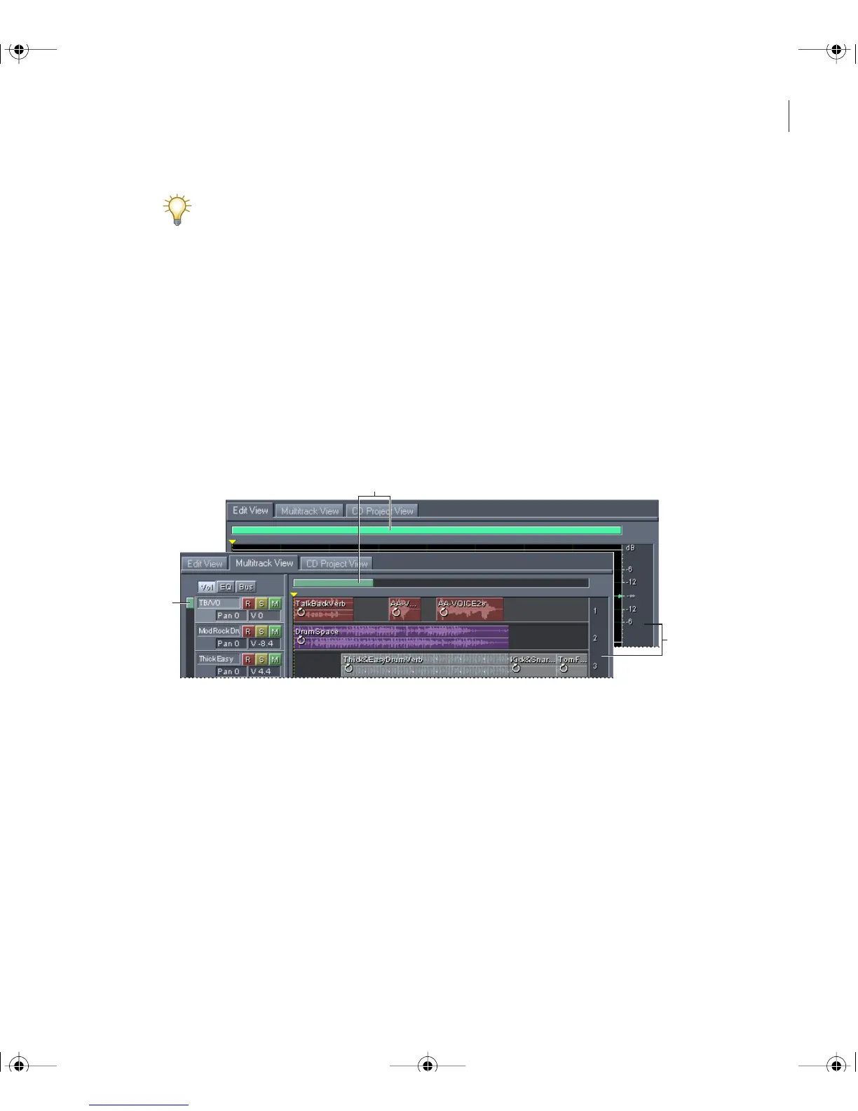 Edit View) or tracks (in Multitrack View). In Multitrack View, there’s an additional vertical