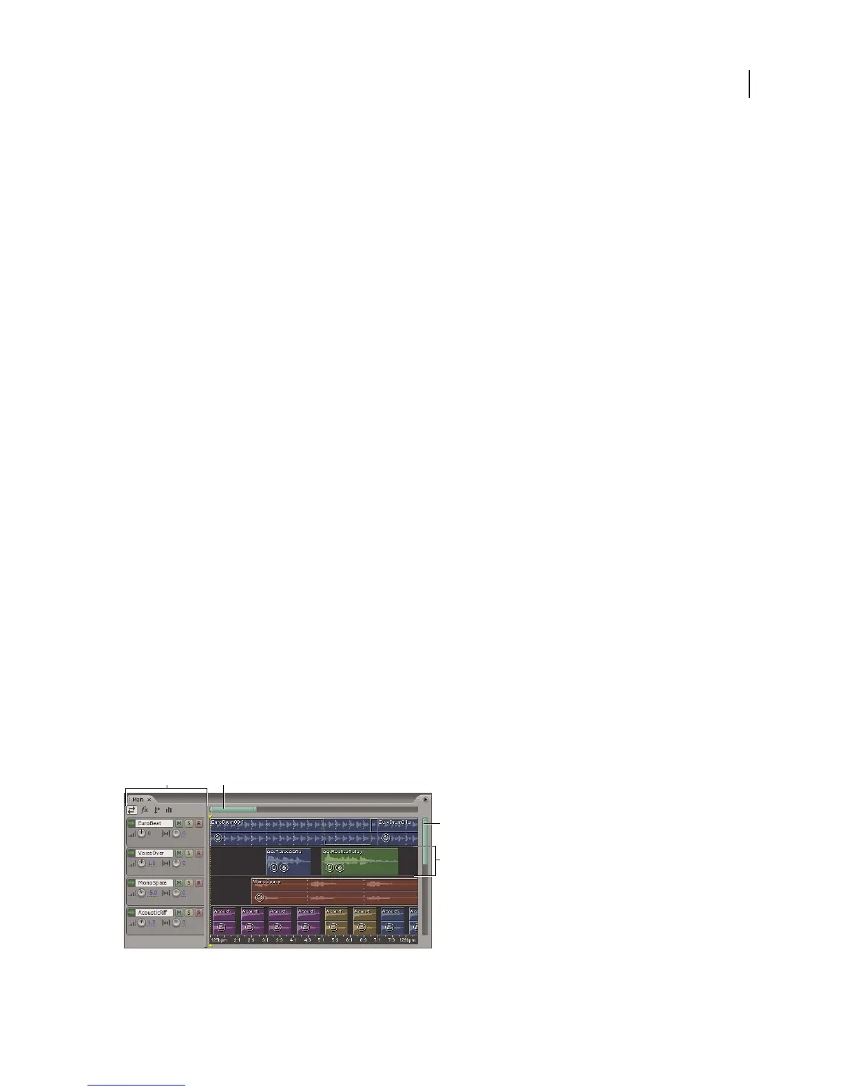 controls on the left, you adjust track-specific settings, such as volume and pan. In the timeline on the right, you edit