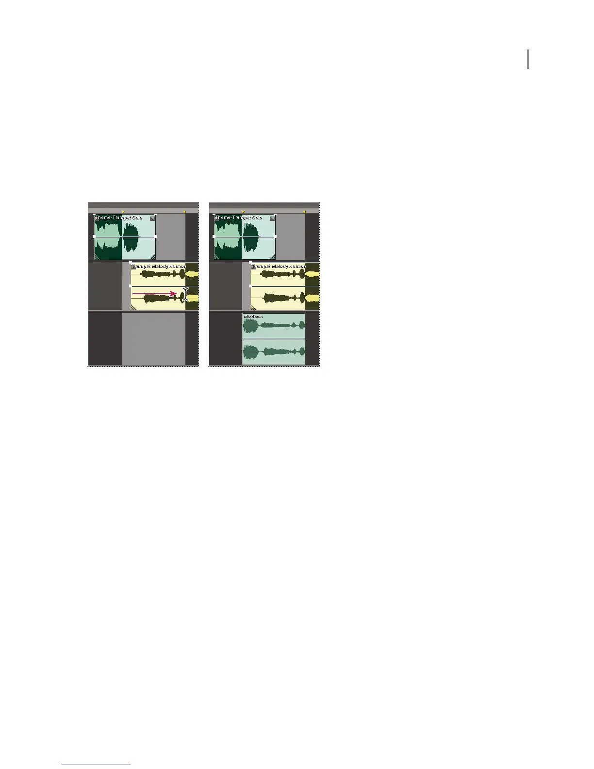 • Select a specific range to mix down. (See “Select ranges in Multitrack View” on page 181.)