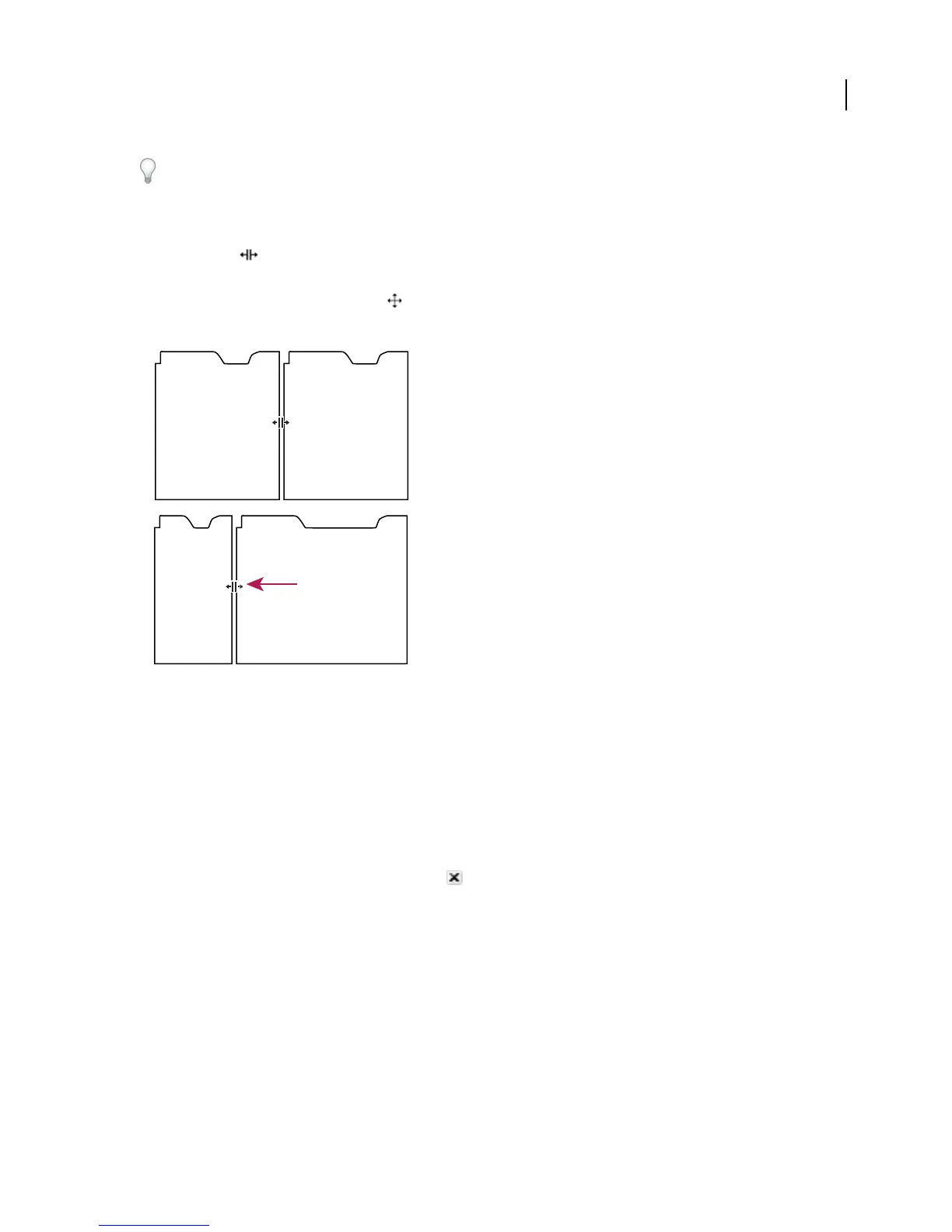 • To resize either horizontally or vertically, position the pointer between two panel groups. The pointer becomes a