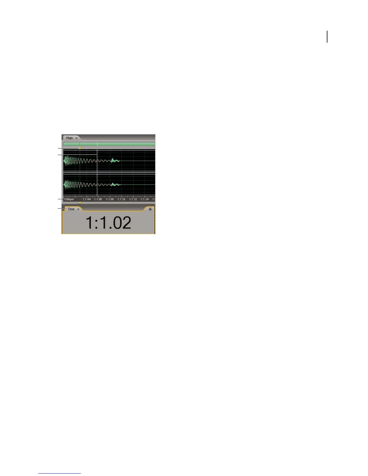 • The playback cursor appears as a vertical, solid white line in the Main panel. As you listen to audio files, the