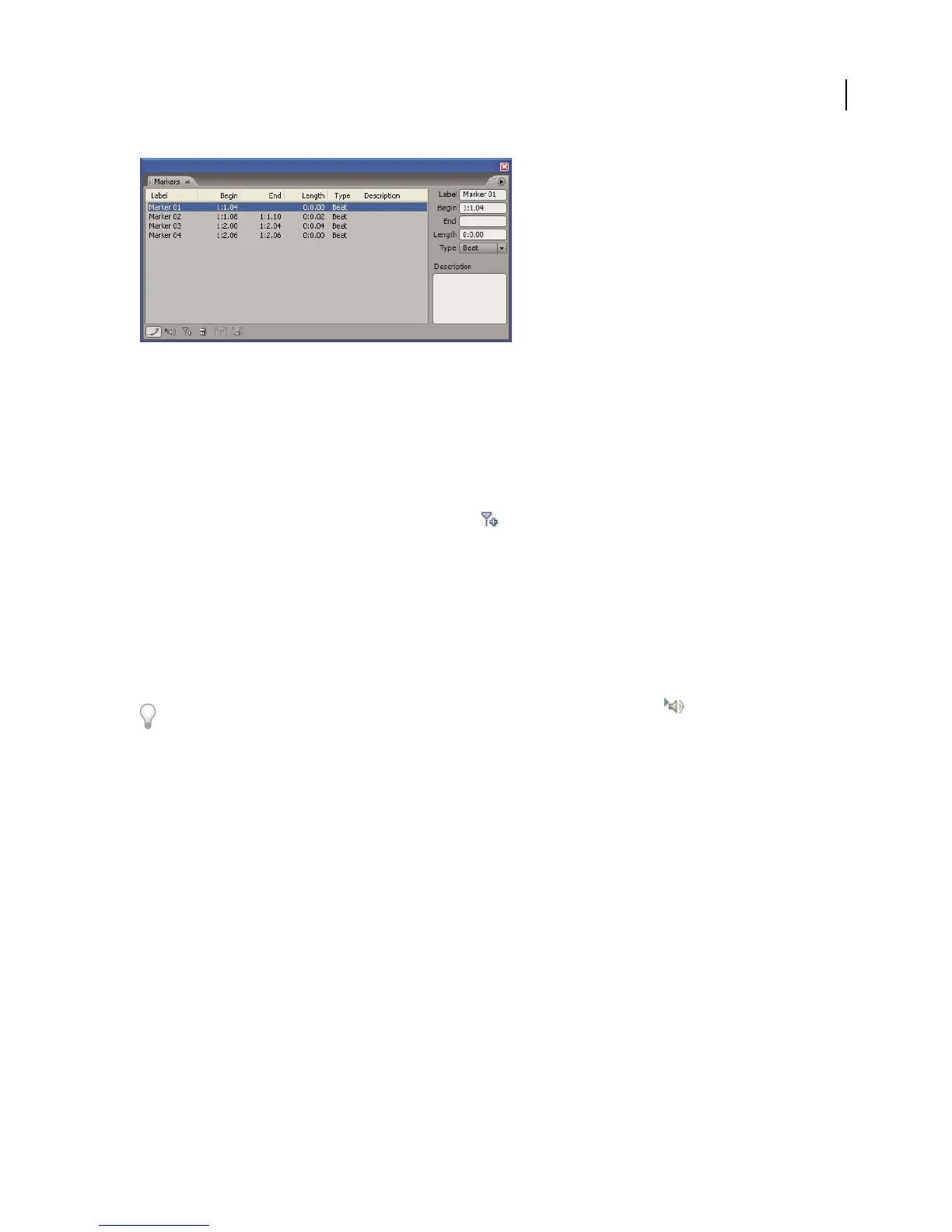 After creating markers, you can fine-tune them to best address the needs of an audio project.