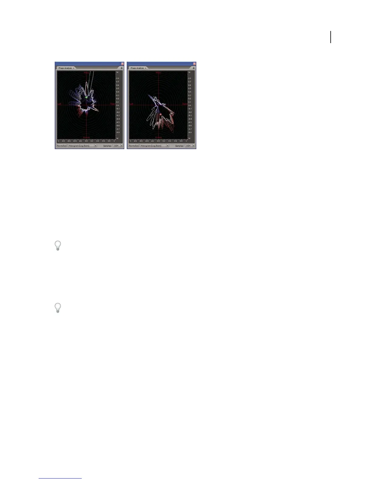 • By default, the graph shows stereo channels on the horizontal axis and phase information on the vertical axis.