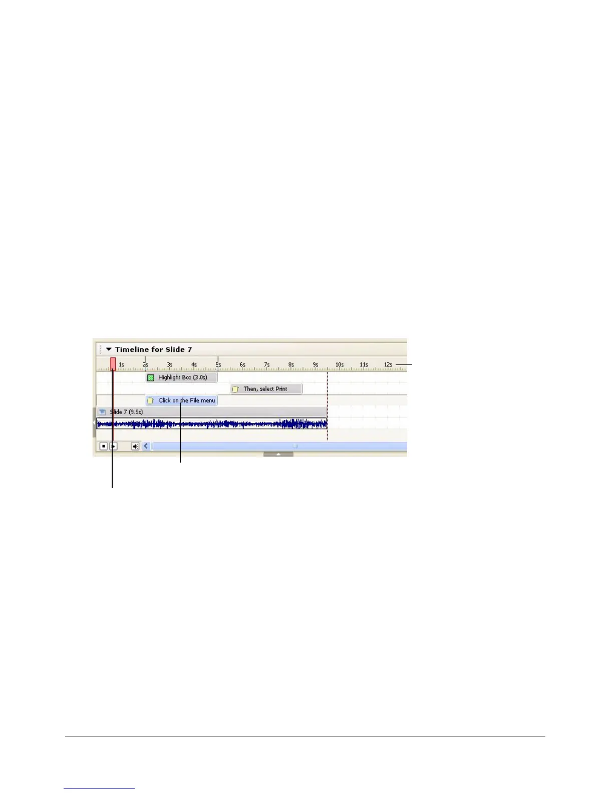 seconds after that. The Timeline also shows any audio associated with the slide or with objects on