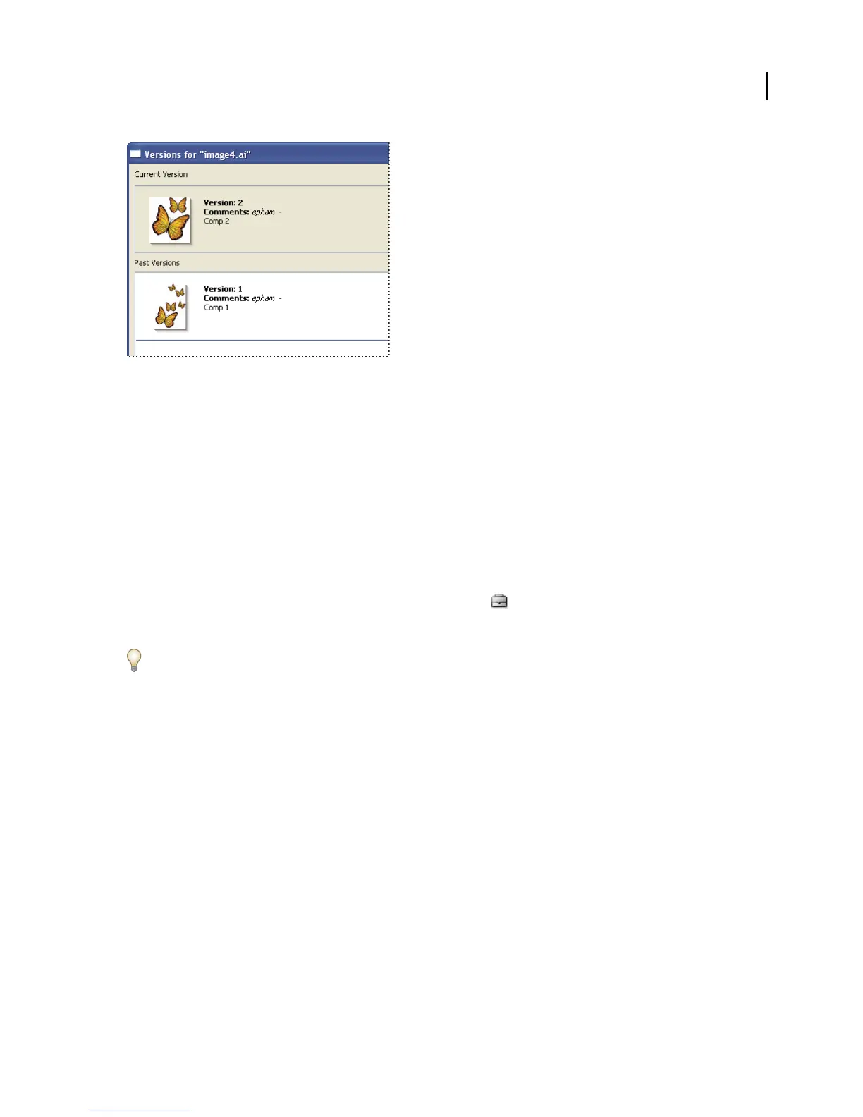 3 Choose Tools > Version Cue > Versions, or click the Versions button in the Content panel. Versions appear in the