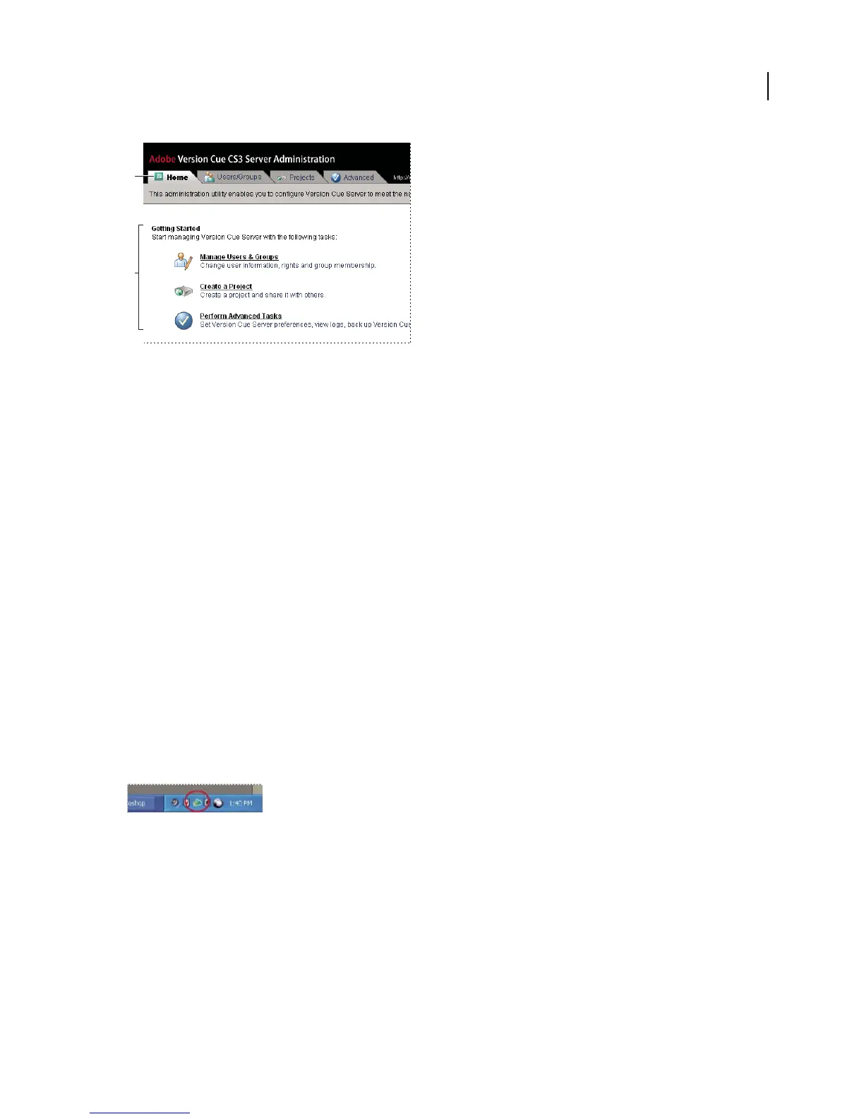 • (Windows) Right-click the Version Cue icon in the system tray and choose Server Administration.