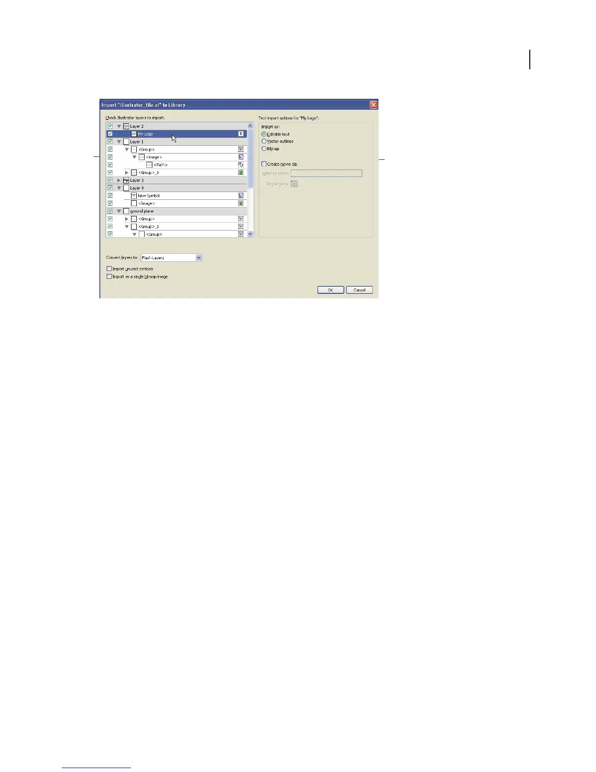 The Incompatibility Report analyzes possible incompatibilities between Illustrator and Flash. The Import Options