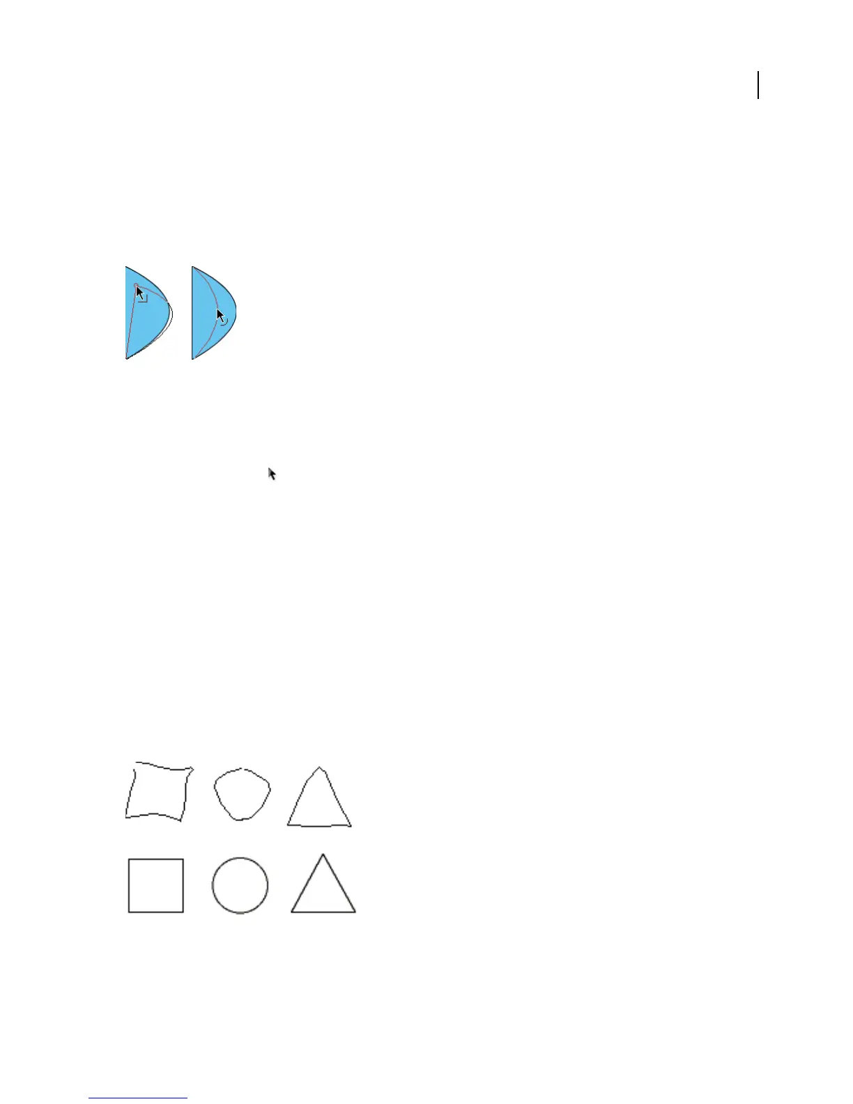 To reshape a line or shape outline, drag any point on a line using the Selection tool. The pointer changes to indicate