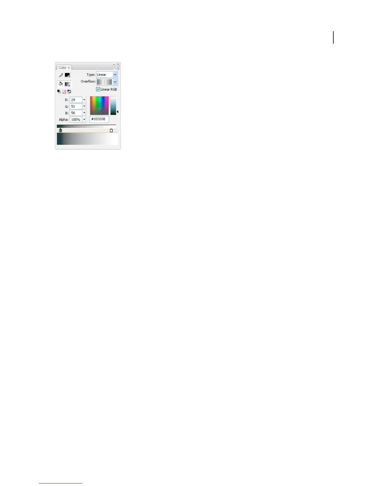Current Color Swatch Displays the currently selected color. If you select a gradient fill type (Linear or Radial) from